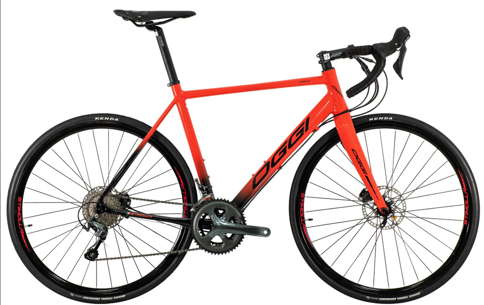 Freio: Shimano Tiagra hidráulico BR 4770 integrado com STI. Pedal: Pedal plataforma com firma pé. Selim: Velo. Canote de selim: Oggi 31.6 x 300 mm alumínio. Cubo dianteiro: HB M4050 32F 100mm QR. Cubo traseiro: FH-M4050 32F 135mm QR. Aros: Aero com parede dupla 32 furos. Raios: Inox. Pneu: KENDA 700 X 28 K1067 ENDURANCE - 60TPI.